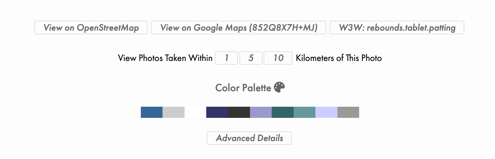 Click this button will open a new page with more metadata and a detailed, scrollable map of the photo's location: