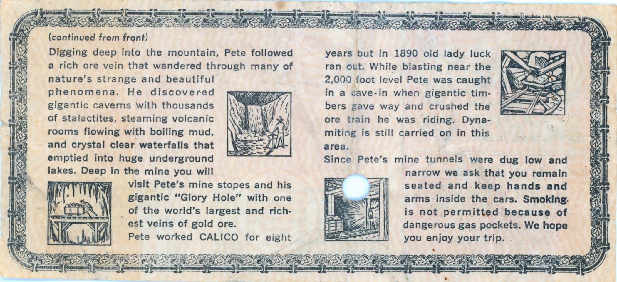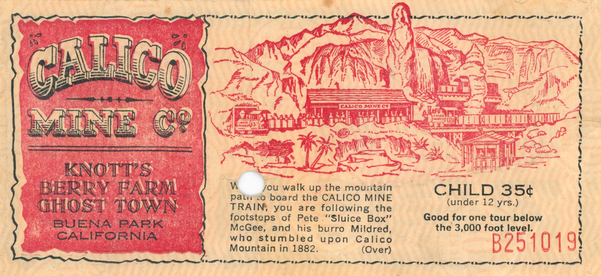 While I've never had the pleasure of visiting Knott's Berry Farm, my father had the opportunity sometime in the late 1950s/early 1960s, judging by the ticket for the Calico Mine that I found in his archives.
