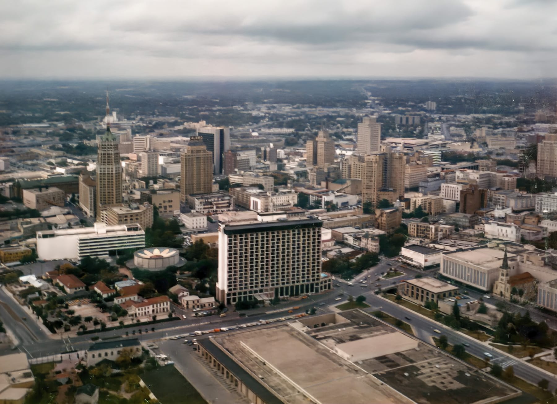 As I examined previously, the San Antonio downtown core has really not changed that much over time. Sure, a few things have been torn down in the last half-century (notably the convention center—the large building in the foreground across from the Hilton—which was demolished in 1995) and few new skyscrapers have been built (notably, the Weston Centre, the Marriott Riverwalk & the Frost Tower), but, for the most part, the city's skyline has remained remarkably static, especially when one considers how much we Texans love to tear down the old stuff in favor of the new.